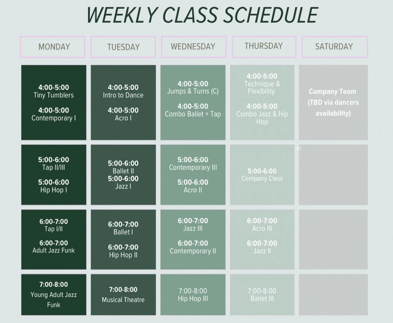 The full schedule, including class times, styles, and registration info, is now available. Click the link below to view and register.